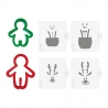 Zestaw dwóch plastikowych foremek, idealnych do wycinania ciasteczek lub tworzenia pierniczkowych ludzików z masy cukrowej oraz cztery szablony, z tworzywa sztucznego dopuszczonego do kontaktu z żywnością. Idealny do tworzenia trójwymiarowych świątecznych ozdób udekorowanych lukrem królewskim, kremem maślanym, cukrem pudrem, kakao, kolorowymi pudrami, kolorowymi sprayami lub aerografem.
