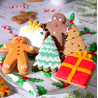 Zestaw trzech metalowych foremek do wykrajania ciasteczek i pierniczków w kształcie choinki, prezentu i ludzika.