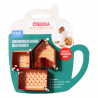 Zestaw trzech metalowych foremek do wykrajania z ciasta kruchego lub piernikowego elementów minidomku. Po złożeniu można ozdobić nim brzeg kubka z gorącą zimową herbatą lub czekolady.