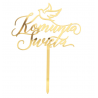 Topper na tort Komunia Święta z gołąbkiem, lustrzany złoty plexi