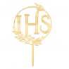 Topper na tort Komunia Święta IHS w kole, lustrzany złoty plexi