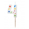 Świeczka urodzinowa cyfra 4, biała, konfetti PartyDeco