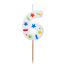Świeczka urodzinowa cyfra 6, biała, konfetti PartyDeco
