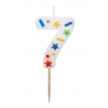 Świeczka urodzinowa cyfra 7, biała, konfetti PartyDeco