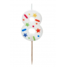 Świeczka urodzinowa cyfra 8, biała, konfetti PartyDeco