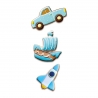 Wymiary: samochód - 10 cm, rakieta - 7,5 cm, łódka - 7,5 cm.
