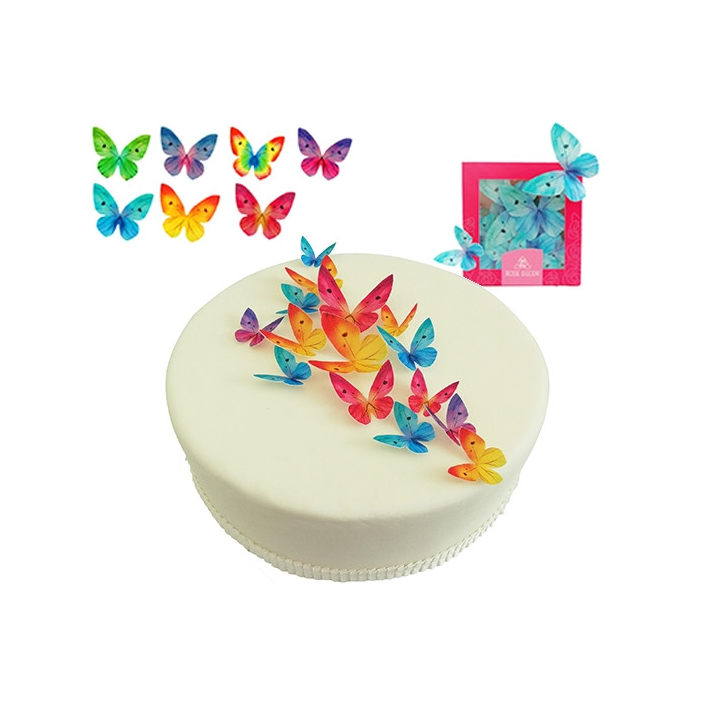 Jadalne motylki z papieru waflowego, mix 7 kolorów. Efektowana dekoracja tortu z okazji urodzin, imienin, chrztu czy ślubu.