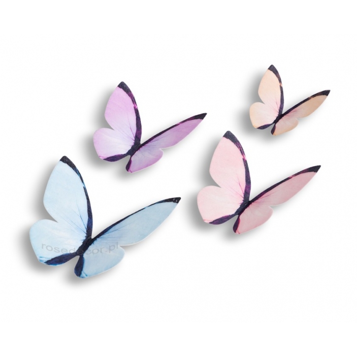 Każde opakowanie zawiera cztery rozmiary motyli: 3, 4, 5 i 6 cm (wysokość).