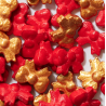Posypki w kształcie kokardek w odcieniach czerwieni i złota to doskonały wybór na Boże Narodzenie. Wykonane z cukru, są w pełni jadalne i bezpieczne do stosowania w wypiekach. Ich duży rozmiar sprawia, że stanowią efektowną dekorację, która przyciąga wzrok i dodaje elegancji każdemu deserowi.