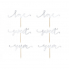 Toppery na tort, babeczki z napisem LOVE, SWEET, YUM (łącznie 6 szt.). Wykonane z ozdobnej tekturki.