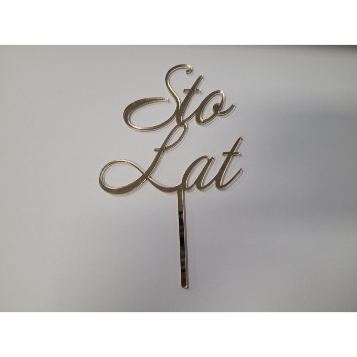 Topper wykonano z wysokiej jakości pleksi o grubości 3 mm. Ma układ napisu „Sto” nad „Lat”, dzięki czemu prezentuje się wyjątkowo elegancko i czytelnie na torcie. Złota, lustrzana powierzchnia efektownie kontrastuje z kremami w różnych kolorach, dodając tortowi blasku i stylu. Solidny szpikulec ułatwia wbijanie i stabilne umocowanie topperu w wypieku.