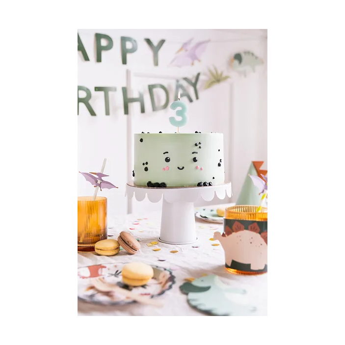 Świeczka ma wysokość około 5,5 cm — wystarczającą, by była dobrze widoczna na tortach standardowych, a jednocześnie proporcjonalną do dekoracji. Kolor jasnoniebieski świetnie współgra z pastelową dekoracją, motywami dziecięcymi oraz nowoczesnymi akcentami. Patyczek, umieszczony w podstawie cyfry, został wykonany z materiału dopuszczonego do kontaktu z żywnością.