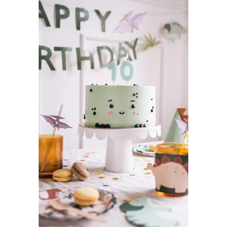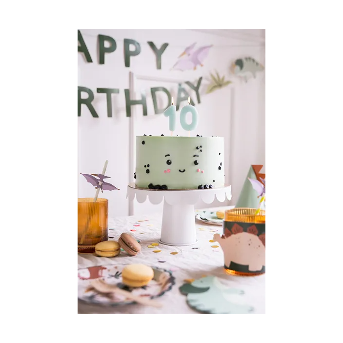 Świeczka ma wysokość około 5,5 cm, co czyni ją proporcjonalną dekoracją dla tortów standardowych. Jasny niebieski kolor świetnie komponuje się z pastelowymi dekoracjami, motywami dziecięcymi lub nowoczesnymi aranżacjami przyjęć. Patyczek lub szpikulec w podstawie umożliwia stabilne umieszczenie świeczki na torcie czy innym wypieku.