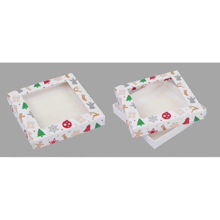 Pudełko z okienkiem Boże Narodzenie białe 10,5 x 10,5 x 2,5 cm – świąteczne opakowanie na pierniczki i ciasteczka