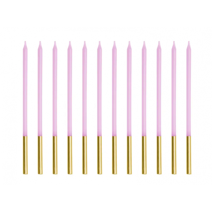 Świeczki urodzinowe liliowo złote, 12 szt. PartyDeco