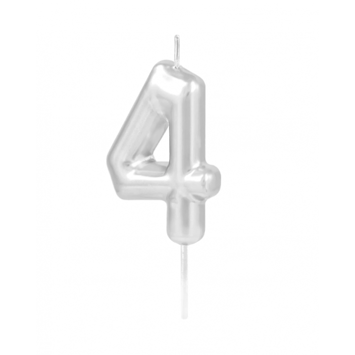Świeczka urodzinowa srebrna połysk cyfra 4, 1 szt., PartyPal