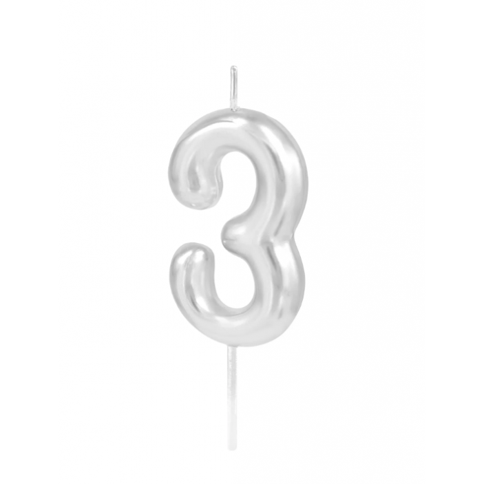 Świeczka urodzinowa srebrna połysk cyfra 3, PartyPal