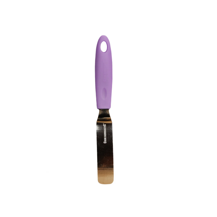 Szpatuła kątowa 22 cm z fioletową rączką marki Alvarak to poręczne i funkcjonalne narzędzie dla wszystkich, którzy dbają o idealne wykończenie tortów, ciast i deserów. Kompaktowy rozmiar i wyprofilowane ostrze ułatwiają precyzyjne rozprowadzanie kremów, polew czy lukrów, a także wyrównywanie powierzchni wypieków.
