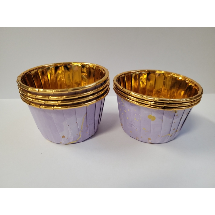 Papilotki kubeczki do muffinek marmurkowy fiolet, 50 szt., to eleganckie, stylowe formy do pieczenia, które nadadzą Twoim wypiekom wyjątkowego charakteru. Połączenie marmurkowego fioletu ze złoconym wzorem oraz złotym środkiem tworzy luksusowy, przyciągający wzrok efekt — idealny na uroczystości, przyjęcia i świąteczne wypieki.