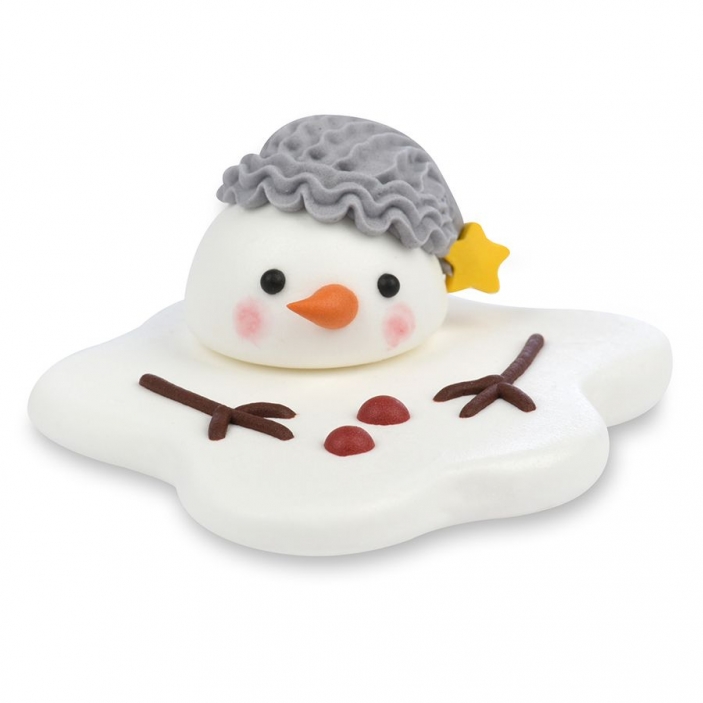 Figurka cukrowa Bałwanek w słońcu, w szarej czapce