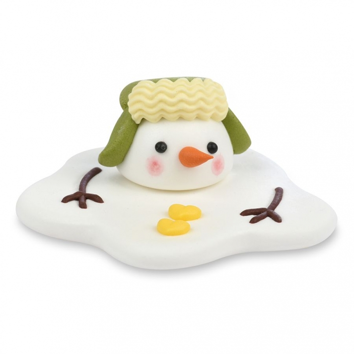 Figurka cukrowa Bałwanek w słońcu, w zielonej czapce