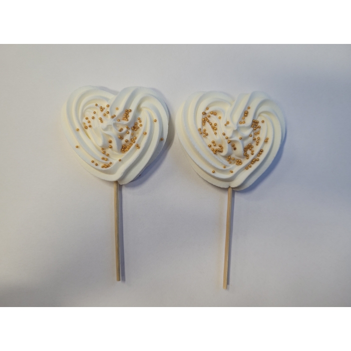 Opis produktu – Beza serce biało-złote na patyku