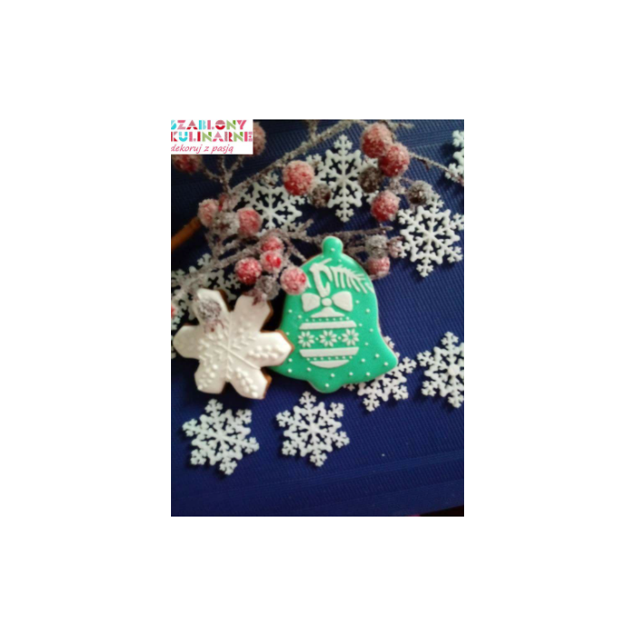 - Ułożony na ciasteczku szablon możesz również obsypać cukrem pudrem.