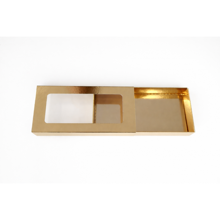 Złote pudełko na czekoladę podkreśla ekskluzywny charakter zawartości i sprawia, że gotowy produkt prezentuje się niezwykle efektownie. Dwuczęściowa konstrukcja ułatwia pakowanie (pudełko jest wsuwane, jedna część w drugą) oraz bezpieczne przechowywanie słodyczy, chroniąc je przed uszkodzeniem.