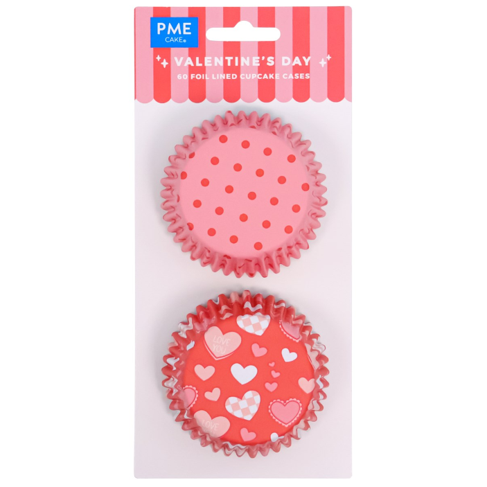 Papilotki do muffinek Valentine’s Day 60 szt., PME to dekoracyjne **papierowe foremki do pieczenia** z motywami miłosnymi, które dodadzą Twoim wypiekom walentynkowego charakteru. Wykonane z wysokiej jakości papieru odpornego na tłuszcz, papilotki ułatwiają pieczenie babeczek, muffinek i mini deserów, a po upieczeniu zachowują kolor i kształt, dzięki czemu wypieki prezentują się pięknie na talerzu lub stole.