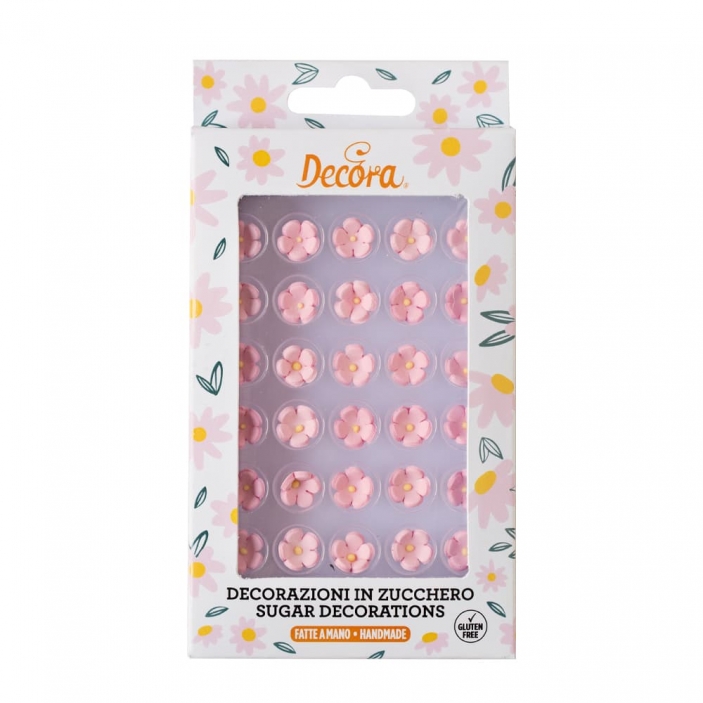 Ozdoby cukrowe małe różowe kwiatki 30 szt.