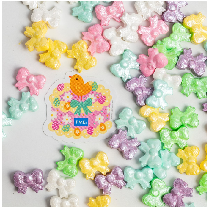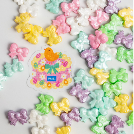 Posypka cukrowa pastelowe kokardki to efektowna jadalna dekoracja, która doda Twoim wypiekom subtelnego i wiosennego charakteru. Te urocze pastelowe kokardki świetnie sprawdzą się jako dekoracja tortów, muffinek, ciasteczek oraz deserów przygotowywanych na Wielkanoc lub inne wyjątkowe okazje.