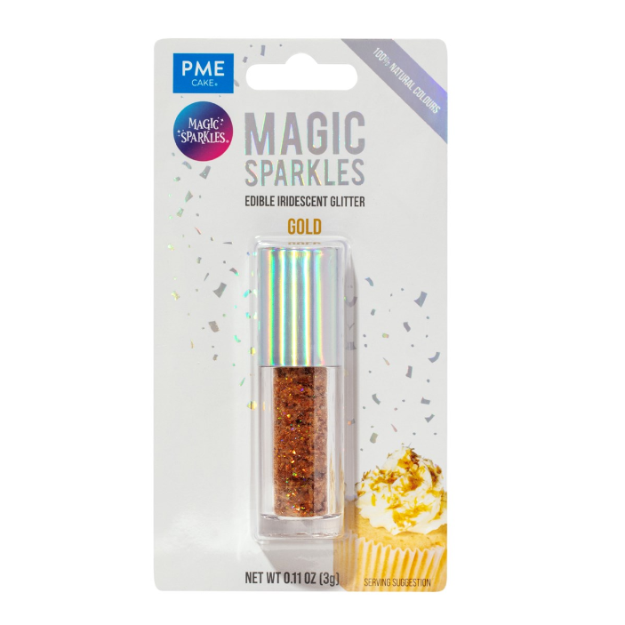 Posypka brokat złoty spożywczy Magic Sparkles to znakomity sposób, aby Twoje wypieki zachwycały wyglądem – dostępna w sklepie tortytorty.pl.