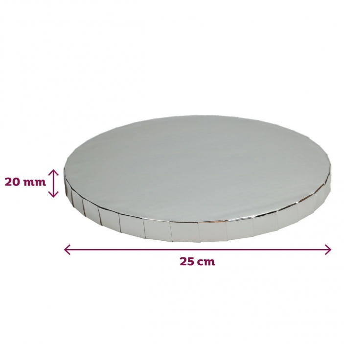 Parametry techniczne – Podkład pod tort srebrny okrągły 25 cm h 2 cm FunCakes