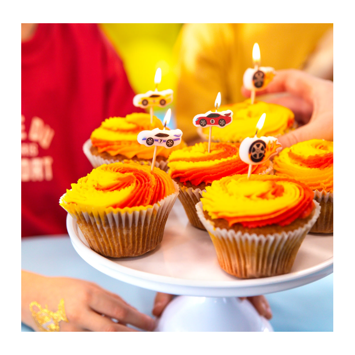 Świeczki wyścigówki, 5 szt. to efektowna dekoracja do tortów, idealna dla małych fanów motoryzacji i szybkich samochodów. Zestaw kolorowych świeczek w kształcie wyścigówek doskonale podkreśli tematykę urodzin i sprawi, że tort stanie się centralnym punktem przyjęcia. To świetny wybór, jeśli chcesz stworzyć wyjątkowe dekoracje do tortów w stylu wyścigowym.