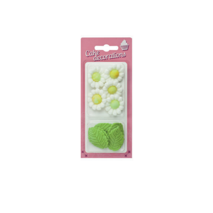 Dekoracja cukrowa liście oraz rumianki białe w blistrze, Rose Decor