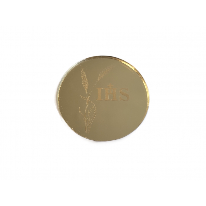 Opis produktu – Dekor na tort IHS, złote lustro plexi, Komunia 1 szt.