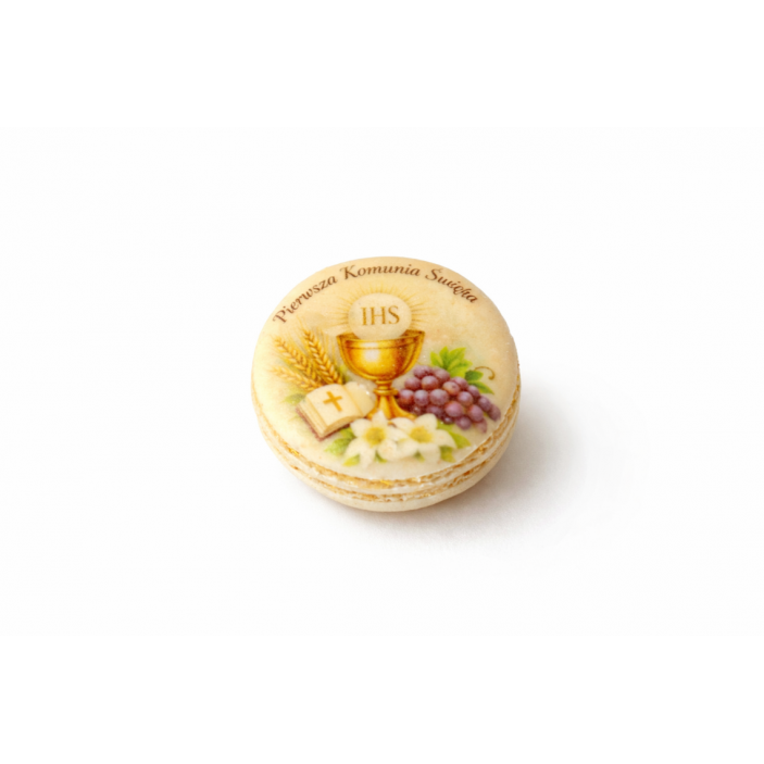 Korpusy makaroników z nadrukiem Komunia Święta, 10 szt., 3,5 cm