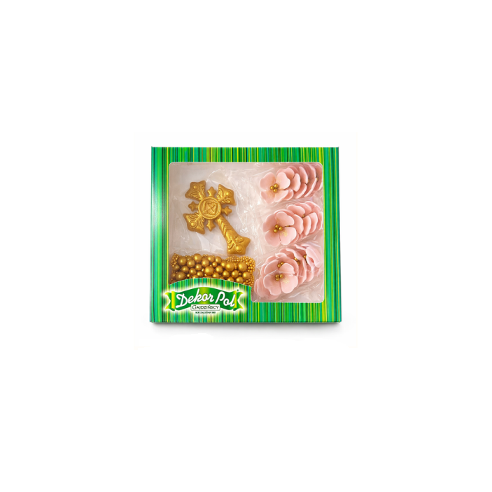 Zamów zestaw komunijny, pudrowy róż mix, Dekorpol już dziś w sklepie Tortytorty.pl i stwórz wyjątkową oprawę tortu na tę szczególną okazję!