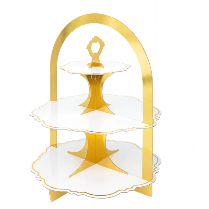 Dzięki eleganckiemu połączeniu bieli i złota patera nadaje każdej aranżacji wyjątkowego charakteru. Świetnie sprawdzi się jako element ekspozycji wypieków dostępnych w sklepie dla cukierników tortytorty.pl, podkreślając estetykę deserów i przyciągając uwagę gości.