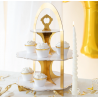 Trzypoziomowa patera umożliwia wygodne i efektowne prezentowanie babeczek, ciastek oraz innych deserów. Jej konstrukcja pozwala zaoszczędzić miejsce na stole, jednocześnie eksponując większą ilość słodkości. To praktyczne rozwiązanie na przyjęcia, komunie czy wesela.